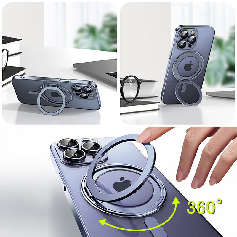 【360度回転リング・スタンド機能】折りたたみ可能なアルミ合金製リングは360度回転が可能。リング部はスタンドとして使用でき、横置きはもちろん縦置きも可能です。折りたたみ可能なリングは使用しないときはケースに収納されるため、持ち運びの邪魔になりません。
